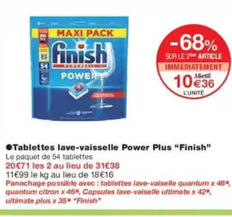 Offre FINISH Tablettes lave-vaisselle Power Plus chez Monoprix