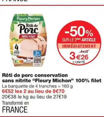 FLEURY MICHON Rôti de porc conservation sans nitrite 100% filet offres et promotions en ligne chez Monoprix