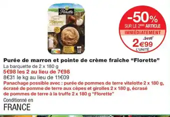 Actuellement en offre chez Monoprix : FLORETTE Purée de marron et pointe de crème fraîche ✅ Valable du 16-12 au 31-12.