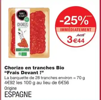 Actuellement en offre chez Monoprix : FRAIS DEVANT Chorizo en tranches Bio ✅ Valable du 21-04 au 3-05.