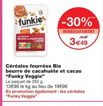 FUNKY VEGGIE Céréales fourrées Bio beurre de cacahuète et cacao offres et promotions en ligne chez Monoprix