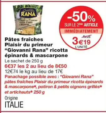 GIOVANNI RANA Pâtes fraîches Plaisir du primeur ricotta épinards & mascarpone : offres et promos Monoprix à découvrir