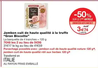 Actuellement en offre chez Monoprix : GRAN BISCOTTO Jambon cuit de haute qualité à la truffe ✅ Valable du 16-12 au 31-12.