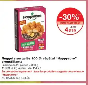 Actuellement en offre chez Monoprix : HAPPYVORE Nuggets surgelés 100 % végétal croustillants ✅ Valable du 1-01 au 18-01.