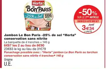 HERTA Jambon Le Bon Paris -25% de sel conservation sans nitrite : offres et promos Monoprix à découvrir