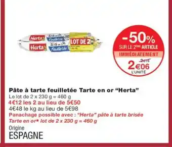 HERTA Pâte à tarte feuilletée Tarte en or offres et promotions en ligne chez Monoprix