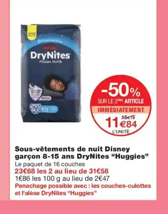 Actuellement en offre chez Monoprix : HUGGIES Sous-vêtements de nuit Disney garçon 8-15 ans DryNites ✅ Valable du 16-12 au 31-12.