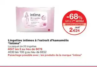 Actuellement en offre chez Monoprix : INTIMA Lingettes intimes à l'extrait d'hamamélis ✅ Valable du 1-01 au 18-01.