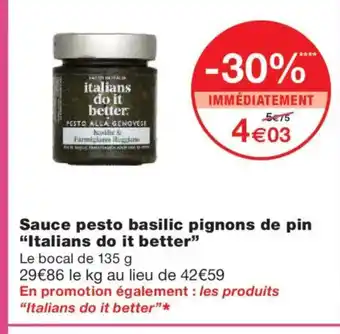 ITALIANS DO IT BETTER Sauce pesto basilic pignons de pin : offres et promos Monoprix à découvrir
