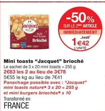 Actuellement en offre chez Monoprix : JACQUET Mini toasts Brioché ✅ Valable du 16-12 au 31-12.