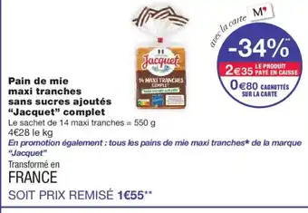 Actuellement en offre chez Monoprix : JACQUET Pain de mie maxi tranches sans sucres ajoutés complet ✅ Valable du 20-01 au 1-02.