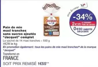 Jacquet - pain de mie maxi tranches sans sucres ajoutés : offres et promos Monoprix à découvrir