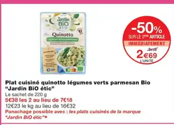 JARDIN BIO Plat cuisiné quinotto légumes verts parmesan Bio : offres et promos Monoprix à découvrir