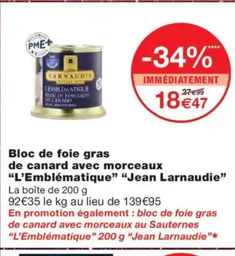 Une promotion JEAN LARNADIE Bloc de foie gras de canard avec morceaux L'Emblématique prévue la semaine prochaine ?