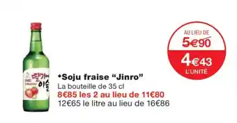 Actuellement en offre chez Monoprix : JINRO Soju fraise ✅ Valable du 17-02 au 1-03.