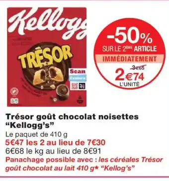KELLOGG'S Trésor goût chocolat noisettes offres et promotions en ligne chez Monoprix