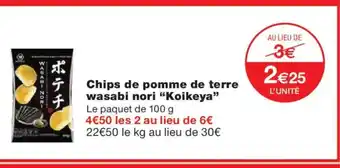 Actuellement en offre chez Monoprix : KOIKEYA Chips de pomme de terre wasabi nori ✅ Valable du 17-02 au 1-03.