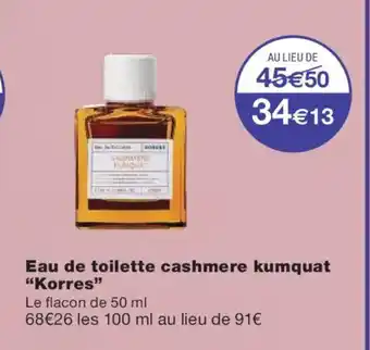 KORRES Eau de toilette cashmere kumquat offres et promotions en ligne chez Monoprix