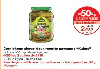 Actuellement en offre chez Monoprix : KUHNE Cornichons aigres-doux recette paysanne ✅ Valable du 3-02 au 15-02.