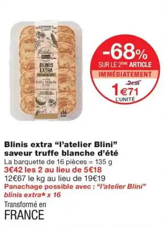 L'ATELIER BLINI Blinis extra saveur truffe blanche d'été : offres et promos Monoprix à découvrir