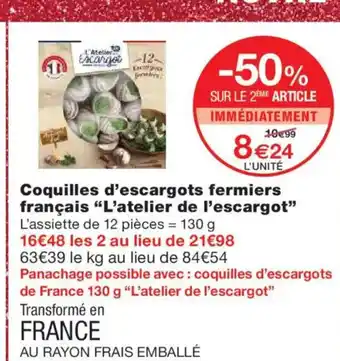L'ATELIER DE L'ESCARGOT Coquilles d'escargots fermiers français offres et promotions en ligne chez Monoprix