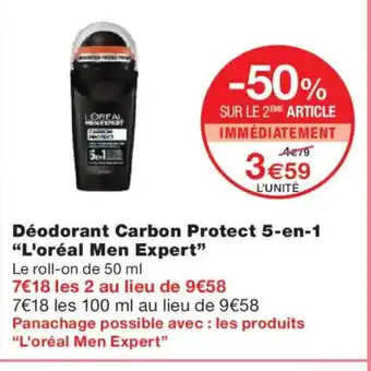 Actuellement en offre chez Monoprix : L'ORÉAL MEN EXPERT Déodorant Carbon Protect 5-en-1 ✅ Valable du 16-12 au 31-12.