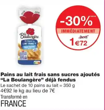 LA BOULANGÈRE Pains au lait frais sans sucres ajoutés déjà fendus : offres et promos Monoprix à découvrir