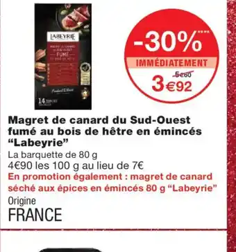 LABEYRIE Magret de canard du Sud-Ouest fumé au bois de hêtre en émincés offres et promotions en ligne chez Monoprix
