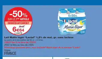 LACTEL Lait Matin léger 1,2% de mat. gr. sans lactose : offres et promos Monoprix à découvrir