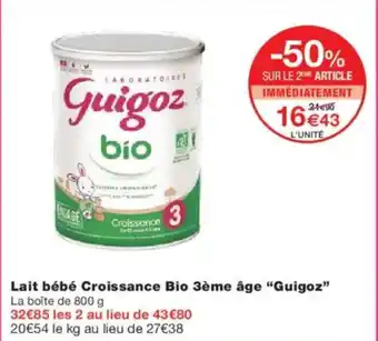 Lait bébé croissance bio 3ème âge guigoz : offres et promos Monoprix à découvrir