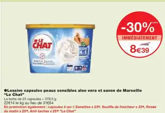Actuellement en offre chez Monoprix : LE CHAT Lessive capsules peaux sensibles aloe vera et savon de Marseille ✅ Valable du 21-04 au 3-05.