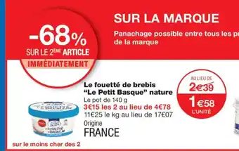 Offre LE PETIT BASQUE Le fouetté de brebis nature chez Monoprix