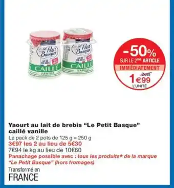 LE PETIT BASQUE Yaourt au lait de brebis caillé vanille : offres et promos Monoprix à découvrir