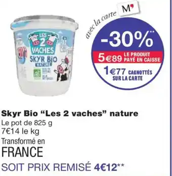 Offre LES 2 VACHES Skyr Bio nature chez Monoprix