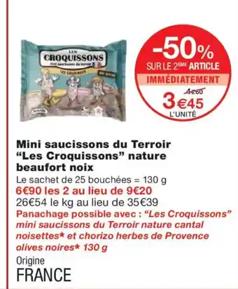 Offre LES CROQUISSONS Mini saucissons du Terroir nature beaufort noix chez Monoprix