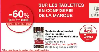 LES RECETTES DE L'ATELIER NESTLÉ Tablette de chocolat noir noisettes offres et promotions en ligne chez Monoprix