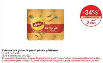 Actuellement en offre chez Monoprix : Lipton - thé glace pêche pétillante ✅ Valable du 1-01 au 18-01.