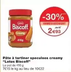 Offre Lotus - pâte à tartiner speculoos creamy chez Monoprix