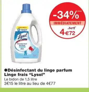 Offre LYSOL Désinfectant du linge parfum Linge frais chez Monoprix