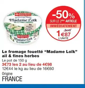 MADAME LOÏK Le fromage fouetté ail & fines herbes offres et promotions en ligne chez Monoprix