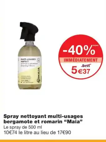 Actuellement en offre chez Monoprix : MAIA Spray nettoyant multi-usages bergamote et romarin ✅ Valable du 16-12 au 31-12.