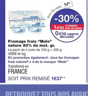 Actuellement en offre chez Monoprix : MALO Fromage frais nature 20% de mat. gr. ✅ Valable du 16-12 au 31-12.