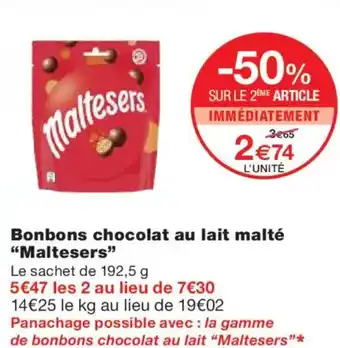 Offre MALTESERS Bonbons chocolat au lait malté chez Monoprix