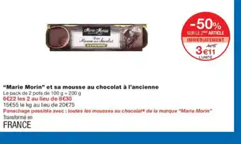 Offre MARIE MORIN et sa mousse au chocolat à l'ancienne chez Monoprix