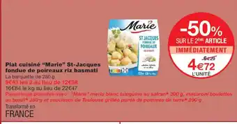 Offre MARIE Plat cuisiné St-Jacques fondue de poireaux riz basmati chez Monoprix