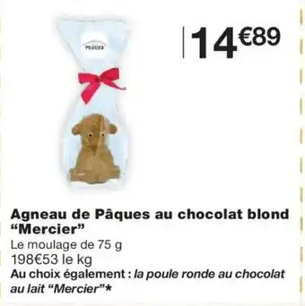 Offre MERCIER Agneau de Pâques au chocolat blond chez Monoprix
