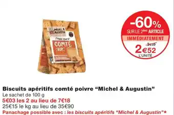 Actuellement en offre chez Monoprix : MICHEL& AUGUSTIN Biscuits apéritifs comté poivre ✅ Valable du 3-02 au 15-02.