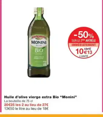 MONINI Huile d'olive vierge extra Bio offres et promotions en ligne chez Monoprix