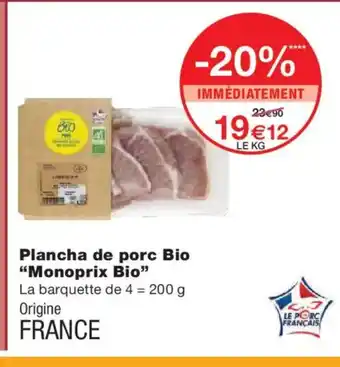 Offre MONOPRIX BIO Plancha de porc Bio chez Monoprix