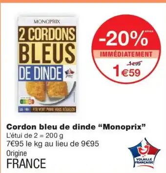 MONOPRIX Cordon bleu de dinde : offres et promos Monoprix à découvrir
